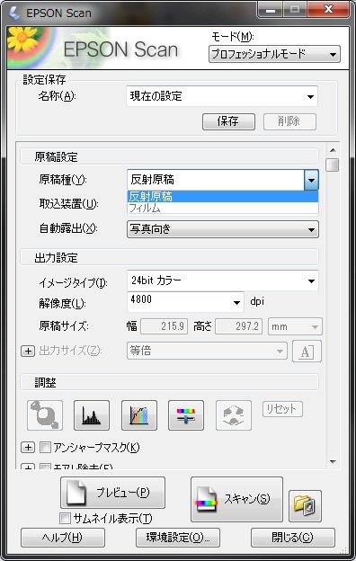 使用したスキャナーはEP-803A(フィルムスキャン未対応)です.