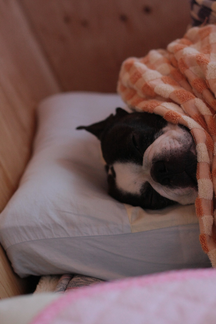 自分で枕のところまで行き、自分でタオルケットをかぶります.