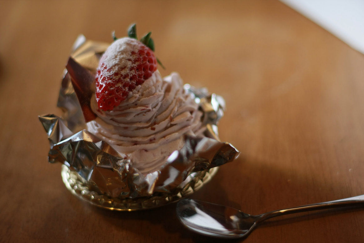 僕が頼んだいちごモンブラン。