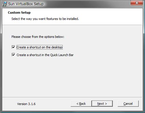 the Setup Wizard will install Sun VirtualBox on your computer.Click Next to Cancel to exit the Setup Wizard.