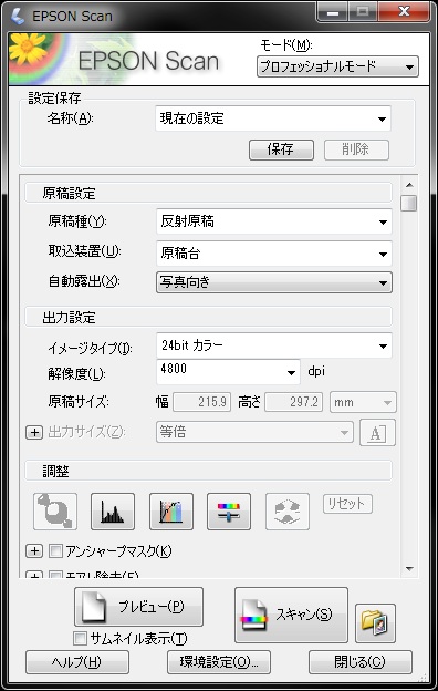 出力設定を『24bit カラー』、解像度『4800dpi』ぐらいにしときます.