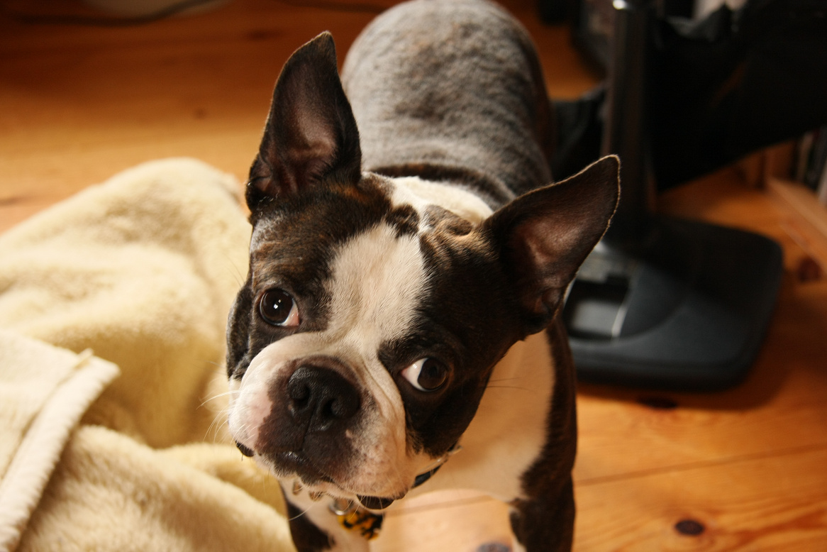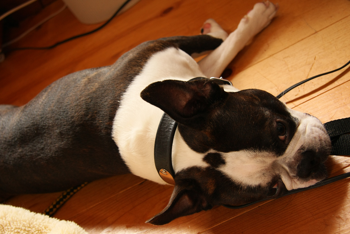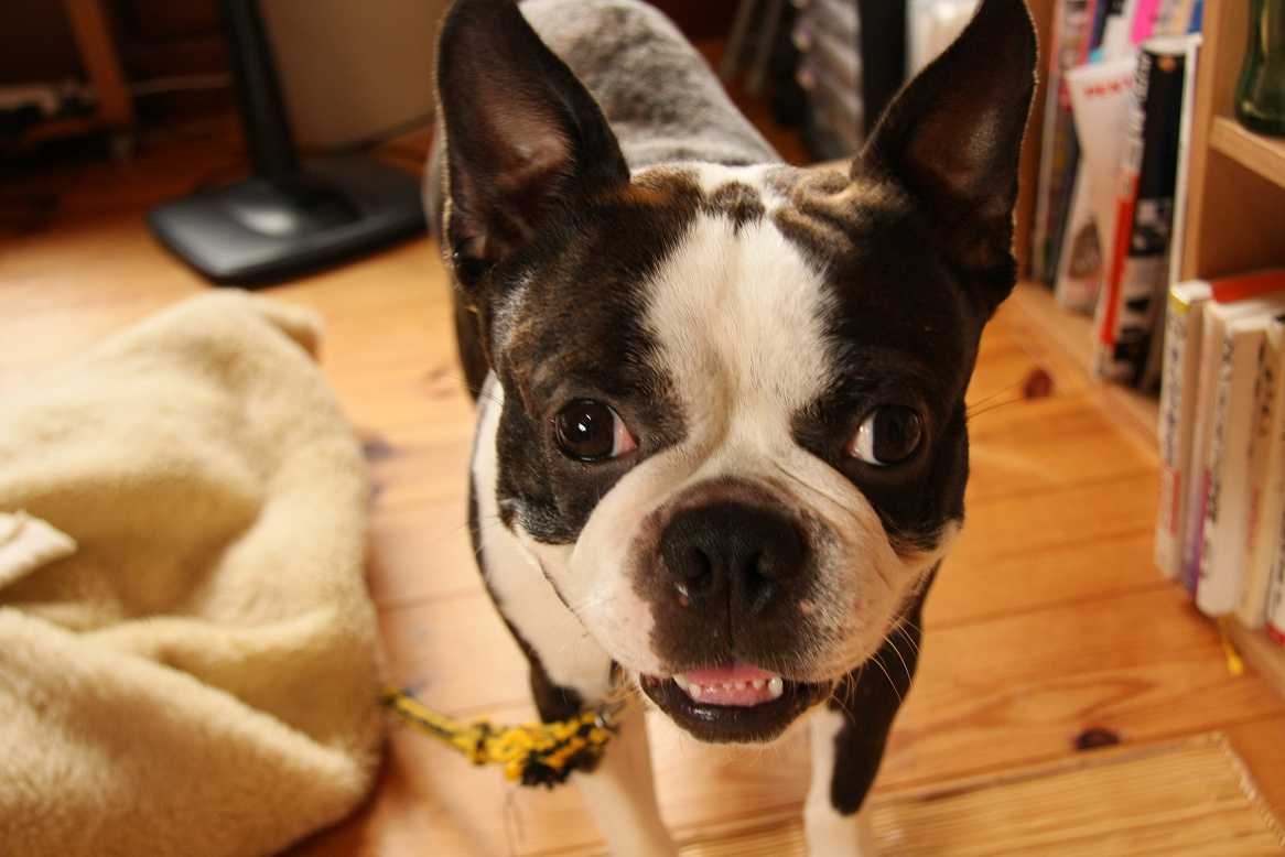 今日はボストンテリアのゆーさんを僕のスペースに持ってきました。