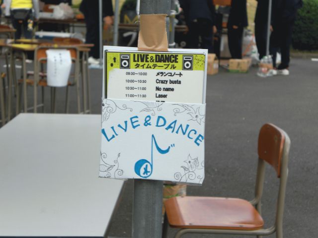 僕のブースに取り付けられたライブのスケジュール表。